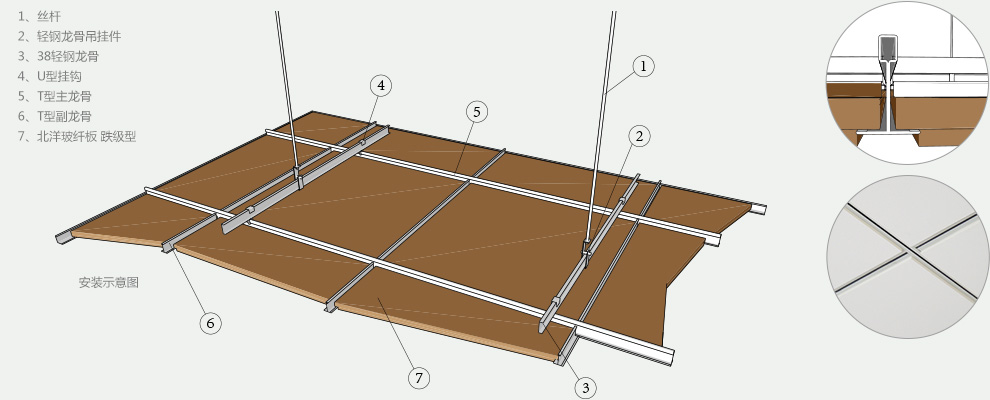 廣泛應(yīng)用于辦公樓、學(xué)校等各類室內(nèi)場所的吊頂。